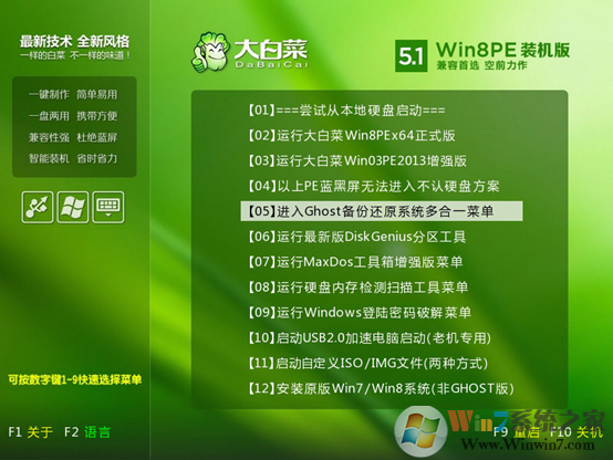 大白菜U盘启动装系统方法: