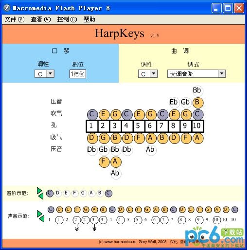 蓝调口琴调音器软件一款简单实用的口琴调音软件,在空闲的时候把一俄罗斯琴友制作的蓝调口琴调性、把位转换软件进行了汉化。这个软件美中不足的是,音频是Midi的发音,如果知识兔换成口琴的就更棒了。