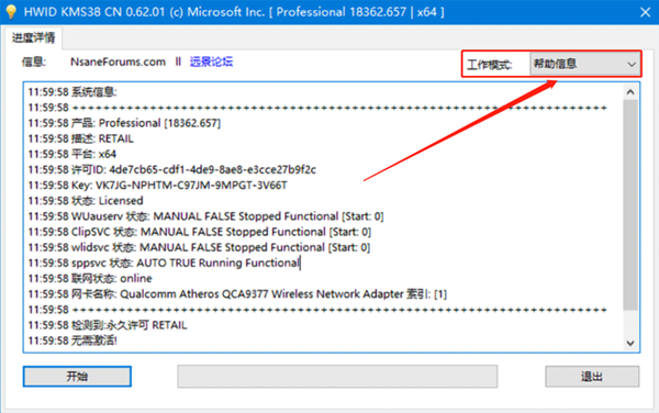 13、单击工作模式的下拉框 — 找到并单击 “数字激活” — 单击左下角的 “开始”按钮;