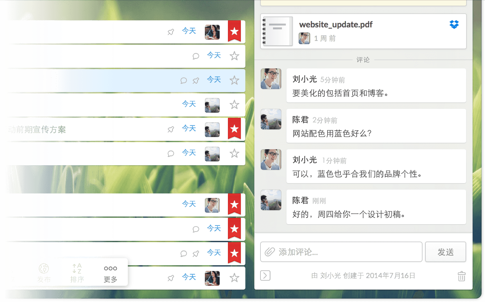 5.在您的待办事宜进行会话,轻轻松松发布您的评价、意见反馈或看法