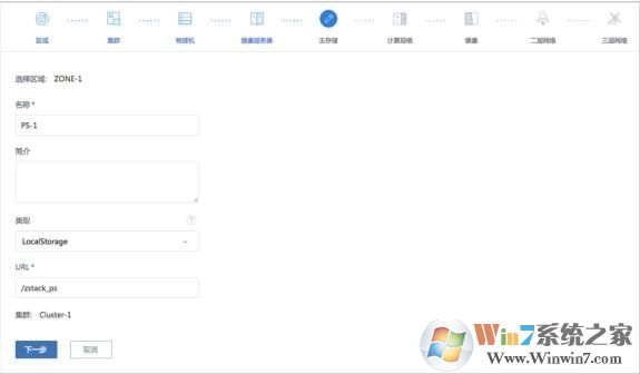 以添加本地存储为例,知识兔选择LocalStorage类型,知识兔设置URL为物理主机本地目录某个文件夹的全路径,例如/zstack_ps。