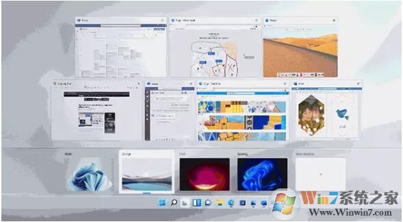 Win11完善了虚拟桌面功能,在原有基础上允许各个“桌面”拥有自己的主题、壁纸、名称。新设计调整了桌面工具栏位置,知识兔以方便触屏用户快速取用。同时,Win11在触屏手势上也有更多选择。