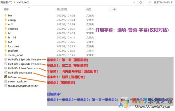 PS:该版本包含了《半条命1:起源》《半条命2》《半条命2第一章》《半条命2第二章》《半条命2消失的海岸线》共五款游戏,全部去除了安装过程,解压后即可直接进入。