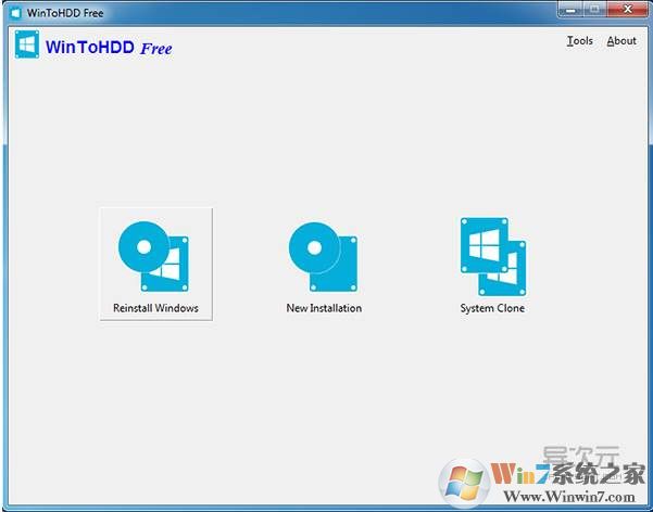 从主界面知识兔可以看到3个选项,Reinstall Windows (重装系统)、New Installation (新装系统) 以及 System Clone (系统克隆),这里知识兔选择第一个重装系统。