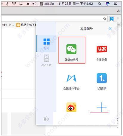 知识兔点击插件图标,知识兔输入新媒体管家帐号;如果知识兔没有帐号,请先注册。