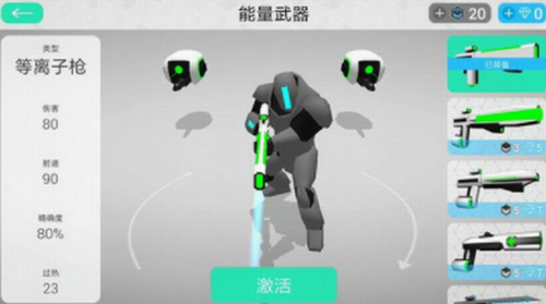 2、在不同的关卡中展开挑战,操作机器人消灭各种各样的敌人。通过挑战不同的关卡获得钻石,为自己的机器人本体进行枪械部件的更换。