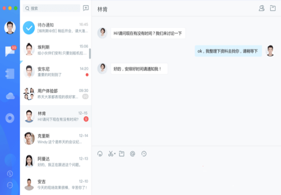 4、消息:支持单聊和群聊;消息已读未读查看,还可一键转任务;重要事项可@到人,还可短信通知。