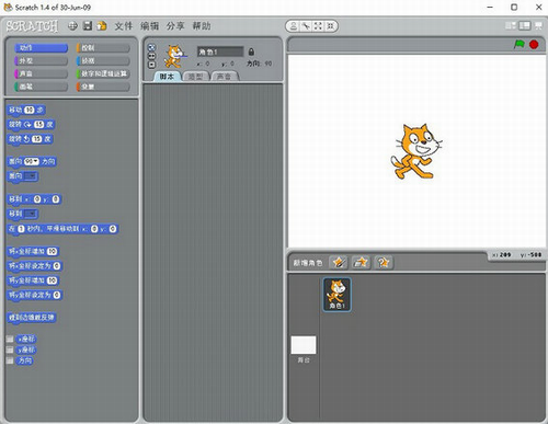 运行打开scratch,然后知识兔选择一个需要动起来的角色图形。如下是该软件自带测试用的一个卡通角色。