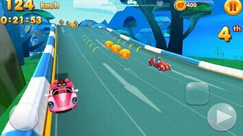 1、游戏的画风使用卡通为主,显得很可爱。在游戏中,玩家会控制着小动物进行比赛,注意躲开对手的撞击和路上的各种障碍物,还要尽可能的捡起道具和金币,解锁更多的车辆。