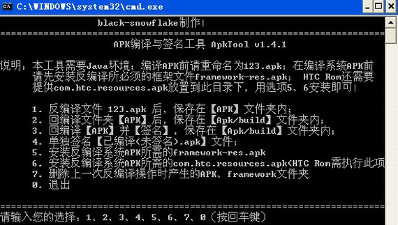 2.知识兔打开APKTool,知识兔选择1进行反编译操作完成后会生成一个apk文件夹,大家可以进行改代码、换图标等操作!