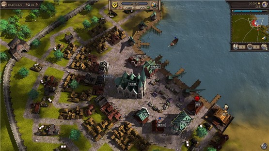玩家在战役模式中的初始城市为Lubeck,在城市中有教堂,交易所,建筑所,行会,市政厅,酒馆,船坞等基础建筑。这些建筑都有其特殊的功能。