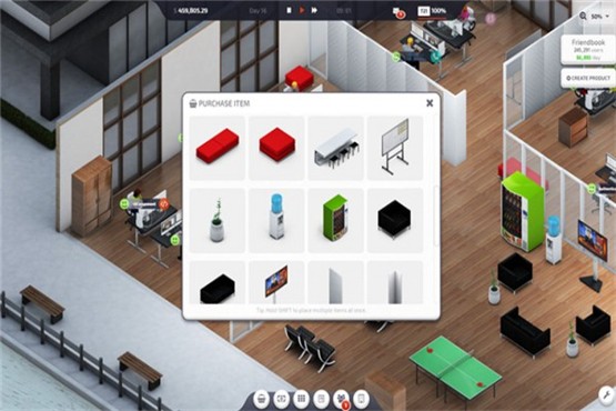 这座城市有各种大小和形状的办公室。由你来选择最合适的那间。你的工作是组织装饰办公室,保持员工开心。