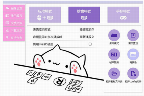 《Bongo Cat Mver官网》是一款功能强大实用且画风非常萌的桌面工具,知识兔这款软件的功能就是让直播在离开镜头前,替代那么几分钟做出可爱魔性的动作,看起来非常的有趣,同时知识兔这款软件具有人性化UI设置界面,可用于装饰视频或直播,能够根据鼠标、键盘操作做出相应的动作,超级可爱,并且知识兔知识兔这款软件是以小猫的形式展现,共有四种模式供用户选择,知识兔包括键鼠、绘画、手柄还有纯键盘,知识兔支持用户设置五十多个音频和按键,并且知识兔可以动手diy小猫的形象,趣味性十足,感兴趣的用户快来下载体验吧。