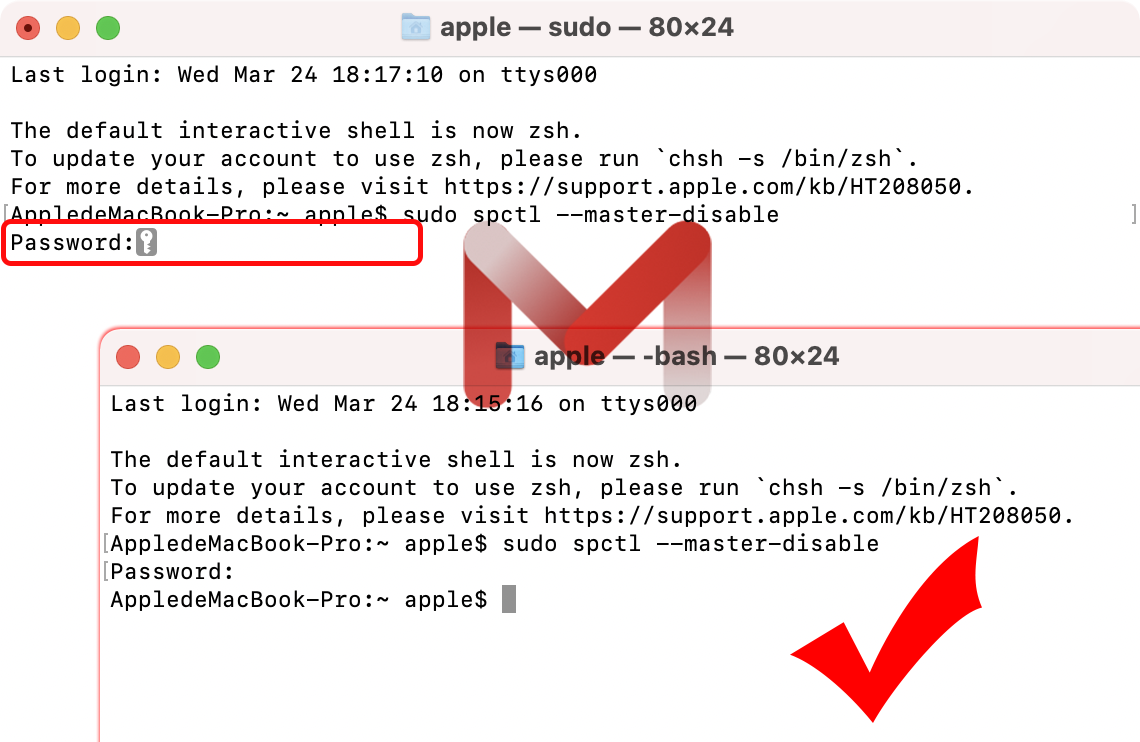 3.然后知识兔再打开终端工具,知识兔输入下图的命令,然后知识兔按回车键运行,提示输入密码,然后知识兔输入你的mac开机密码,按回车键运行;