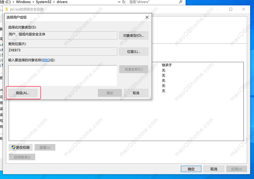修改pci.sys权限